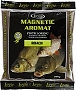 Sacos de pérolas magnéticas em embalagens plásticas transparentes com rótulos preto e amarelo.