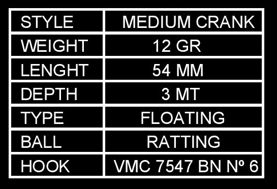Tabela de especificações técnicas para um produto de pesca