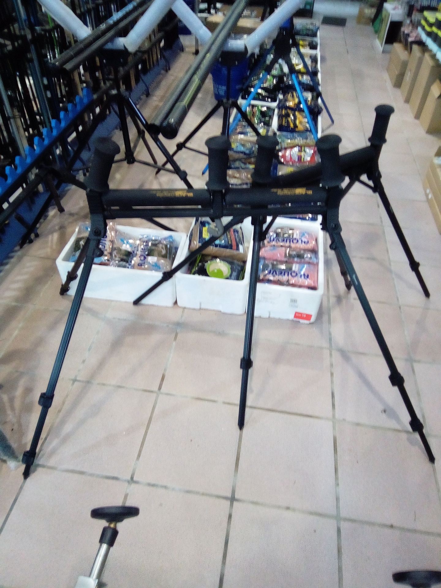Rolo de pólo de competição extra largo de 4 pernas. O rolo central cria 2 posições e protege o pólo em condições de vento. EVA compatível com pólos com rolos de extremidade moldados. Altura ajustável com pernas telescópicas de comprimento total. Dobra-se para facilitar o transporte. Fornecido em bolsa de transporte.
