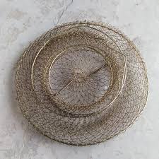Prato decorativo metálico prateado com padrão de malha vazada