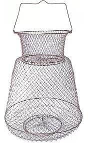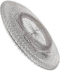 Rede redonda de pesca metálica sobre fundo branco