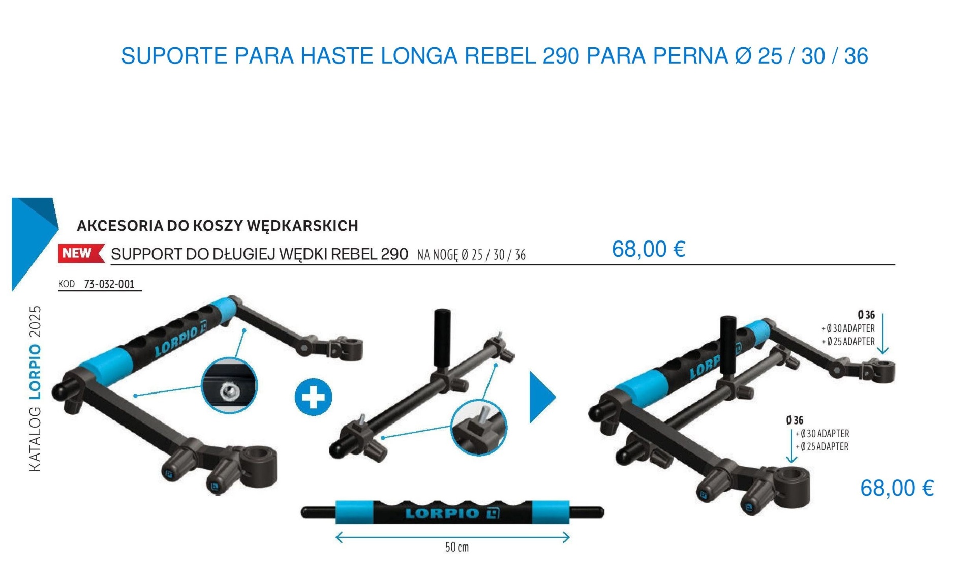 SUPORTE PARA HASTE LONGA REBEL 290 PARA PERNA Ø 25 / 30 / 36