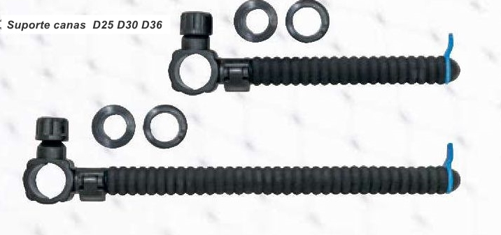 Suportes pretos para canas com anéis de borracha sobre fundo branco